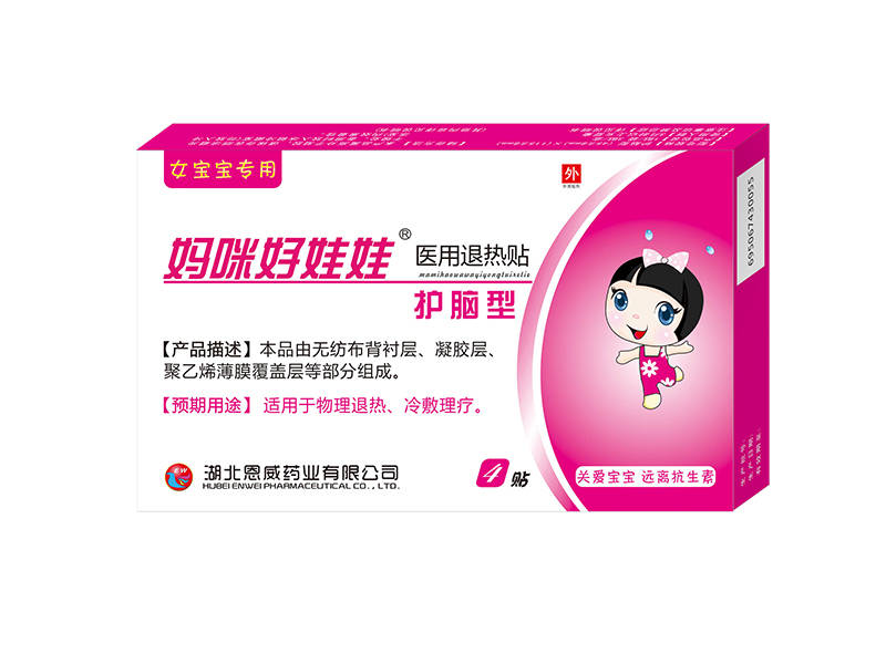 - 產品介紹【產品名稱】:媽咪好娃娃醫用退熱貼(女寶寶專用型)【型號規格】:4貼/盒、1貼/袋,(45±8mm)×(115±8mm)【適用人群】:3月齡以上女寶寶【[查看詳情]